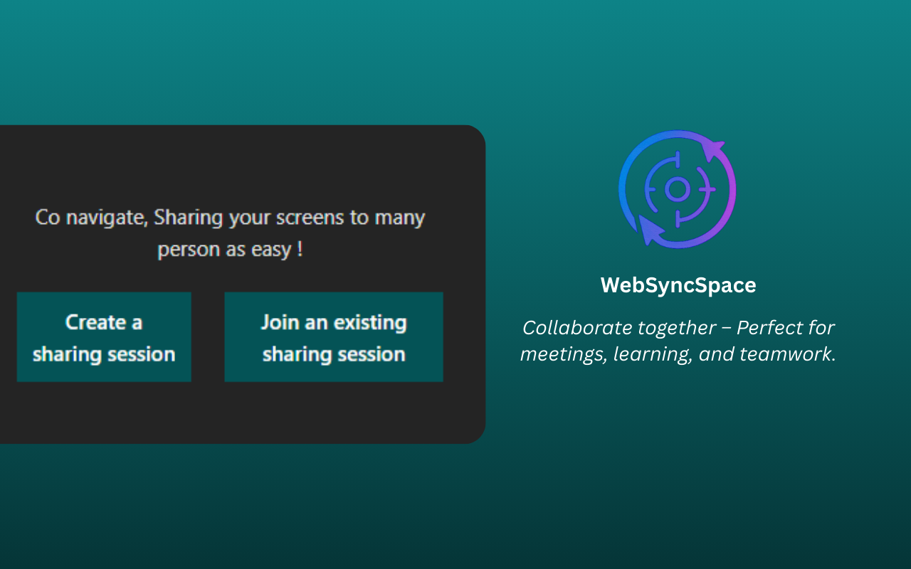 Une plateforme de collaboration en temps réel permettant aux équipes de synchroniser leur environnement de travail web, partager des ressources et collaborer de façon fluide et intuitive.